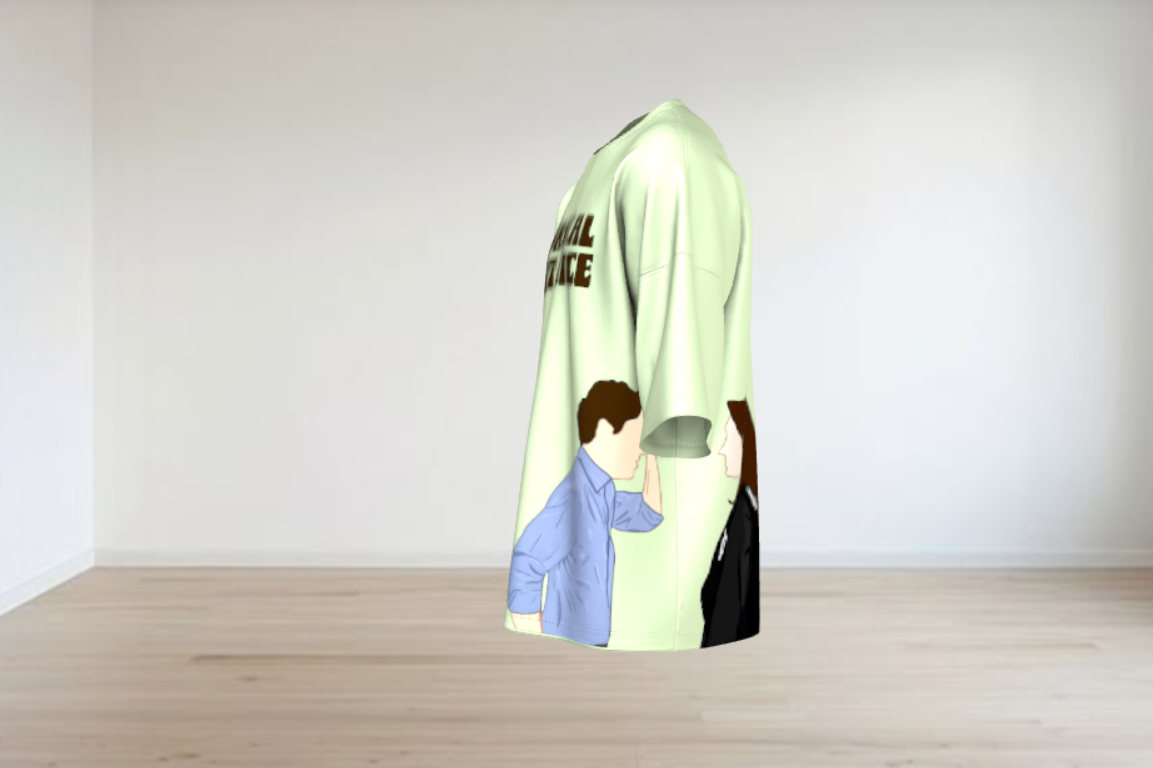 Capture that “indie-movie” feeling with our “Surreal But Nice” oversized tee. This shirt features a unique wrap-around illustration inspired by the iconic blue-door encounter. With its dropped shoulders and relaxed fit, it’s designed for those who value comfort as much as a good cinematic reference.